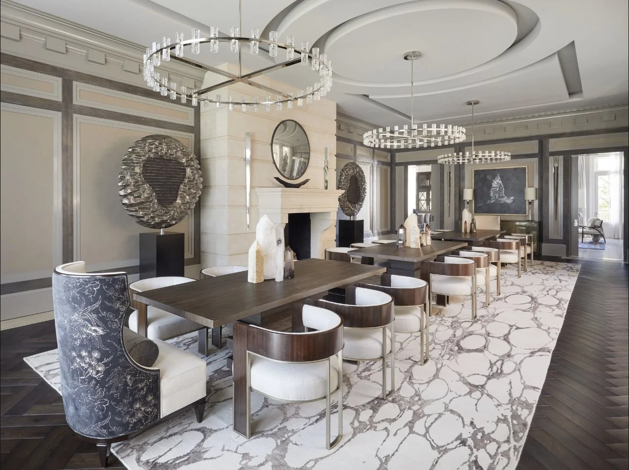 A project with Reiner Design Group as Reiner White Design Studio, this palatial Buckhead, Atlanta estate blends timeless architectural elements with Art Deco inspired modern furnishings.
